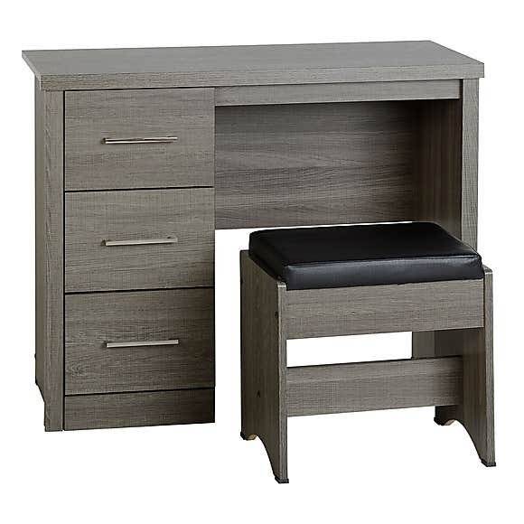 Grey 3 Drawers Dressing Table with Stool