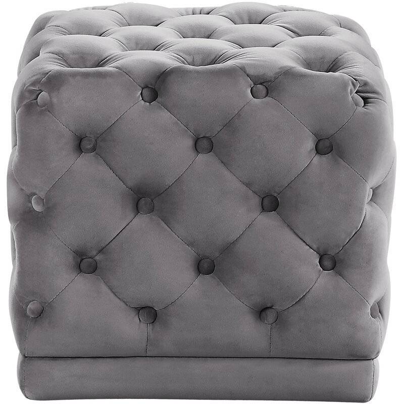 18 Inch Wide Velvet Tufted Square Ottoman