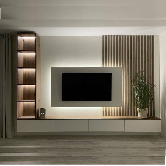 Modern TV Unit with Half White Cladding Design