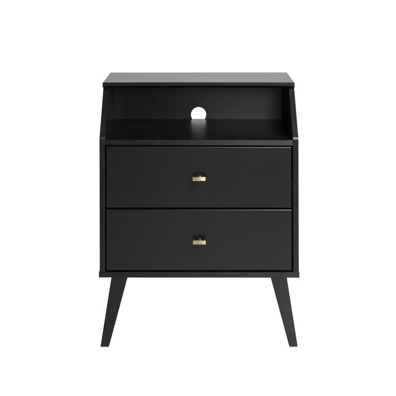 This stylish 2-drawer side table is the ideal size for your bedroom. It provides a useful storage drawer and sits by your bed. It compliments any furniture in your home and blends well with any kind of room décor. The black body with two drawers drawer looks wonderful and trendy.