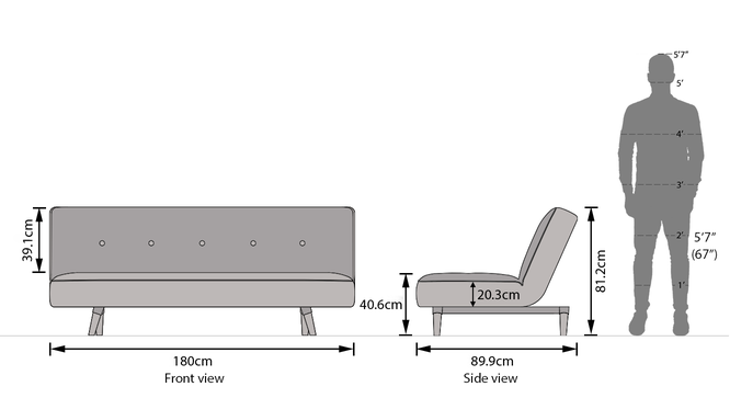 - Size: 81.3 cm H x 89.9 cm W x 180.1 cm L