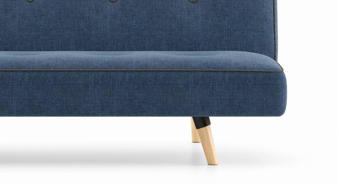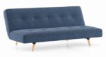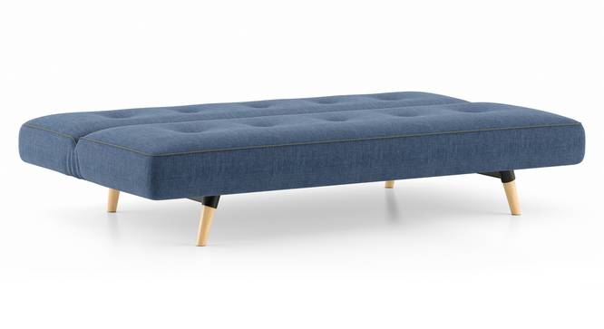 This versatile 3-seater sofa cum bed combines modern design with functionality. Upholstered in a stylish blue fabric, it features a sleek, armless silhouette and wooden legs. The sofa easily converts into a bed, offering both seating and sleeping options. Ideal for compact spaces, it’s perfect for those who value both style and convenience. The geometric-patterned throw pillows and rug add a contemporary touch, making this piece a chic addition to any living room.