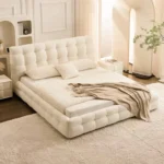 A panel bed with an extended wall headboard will make a statement in your bedroom. Built around a sturdy frame made of manufactured wood, this design incorporates soft fabric in vertical channels for contemporary accents that fit in practically any decor.
