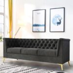 This is a fashionable, comfortable sofa that combines modern and contemporary design. This stunning couch, with its diamond button tufted back cushion and tufted arms covered in plush velvet, looks great on its own or with the club chair from the same collection. Adapts to modern and contemporary design styles in living rooms, lounges, dens, and offices.