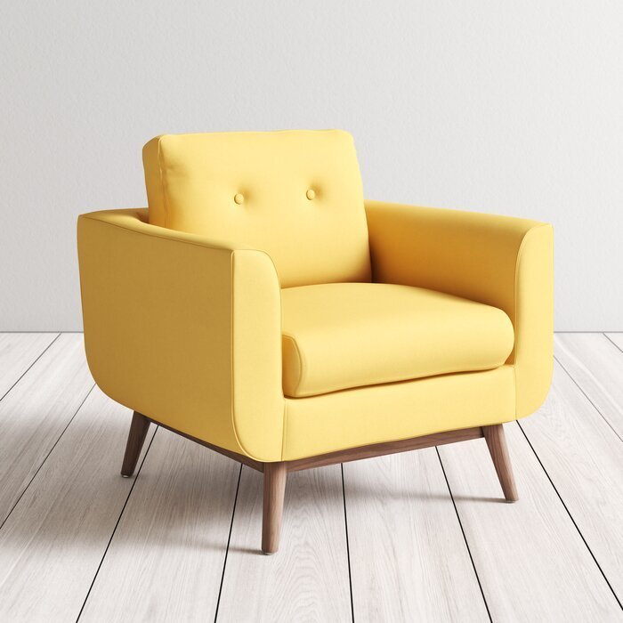 You can still have huge style even if you just have a limited place. This mid-century armchair will add huge style points to your living space. This chair’s clean-lined design is complemented by its tapered, splayed legs, knife-edge arms, and solid wood frame. The armchair’s upholstery is foam-filled for the ideal amount of give and is made of a sturdy, cleanable synthetic fabric. Cleaning and remote-finding are quite simple thanks to the detachable seat and back cushions (as well as their coverings). The back has simple button tufting to provide some flair.