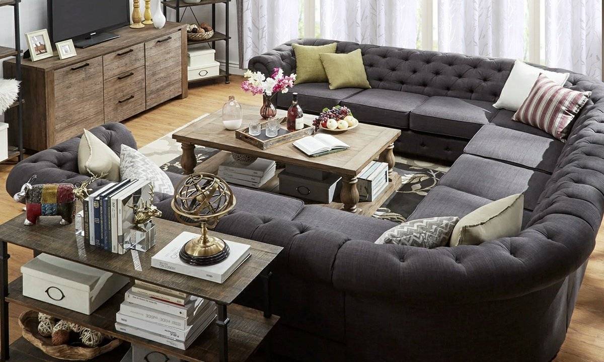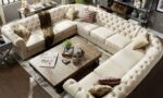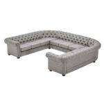 Chesterfield’s 11-seat sectional is both spacious and elegant, making it ideal for those who enjoy entertaining. The U-shaped sectional has three armless couches, two corner pieces, and one pair of arms. It is constructed of solid wood and foam cushioning in the traditional chesterfield style. The sectional has a rolled back and arms and comes in a variety of colors and materials. It also has button diamond tufting to complete the elegant design’s sophisticated appearance.