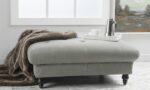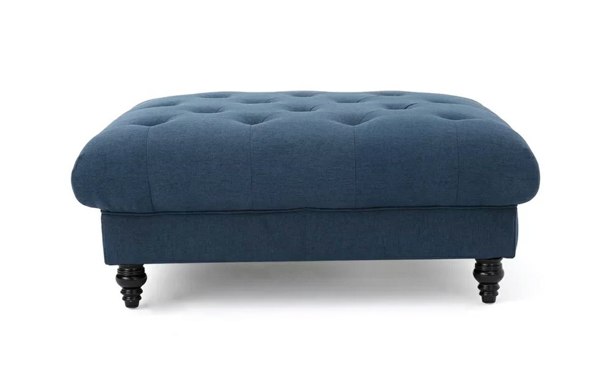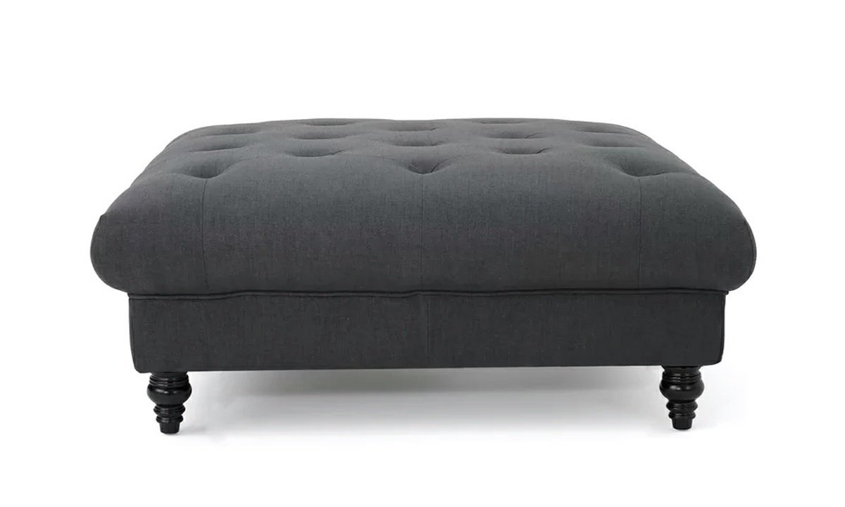 This tufted ottoman offers a novel yet opulent substitute for your wood or metal coffee table. This ottoman gives classic or transitional decor an exquisite touch with its button tufted style and dark-finished legs. This cushioned ottoman may also be used as extra seating when you have visitors for further versatility.