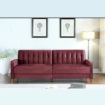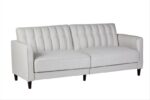 This is a stylish, comfortable couch that combines modern and contemporary design elements. This gorgeous couch pairs well with the club chair from the same collection or looks great on its own. It features protective arms covered in plush velvet and a button cushion with channel quilting. Adapts to the office, den, living room, and lounge’s modern and contemporary design themes.