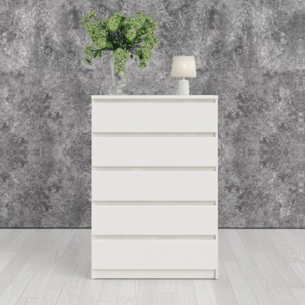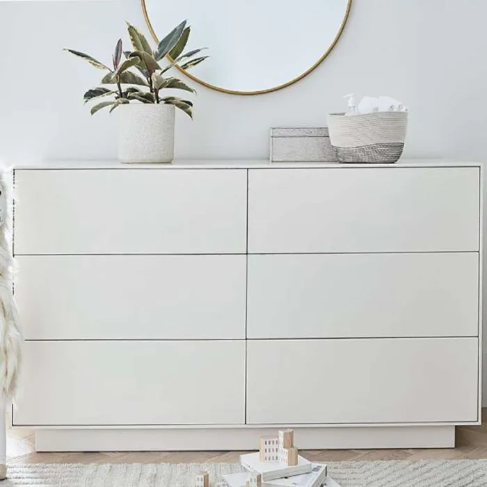 The Emilia Dresser is the ideal accent to a contemporary, minimalist space. It organizes clothing, toys, and more in a timeless white with a simple design.