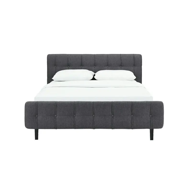 With this cushioned, upholstered bed, stick to modern design. The headboard’s tufted form provides depth and visual intrigue to catch the eye, and the fabric upholstery enriches the entire aesthetic. As part of the overall heavy-duty design, sturdy slats are included to provide you with sound support as you sleep.