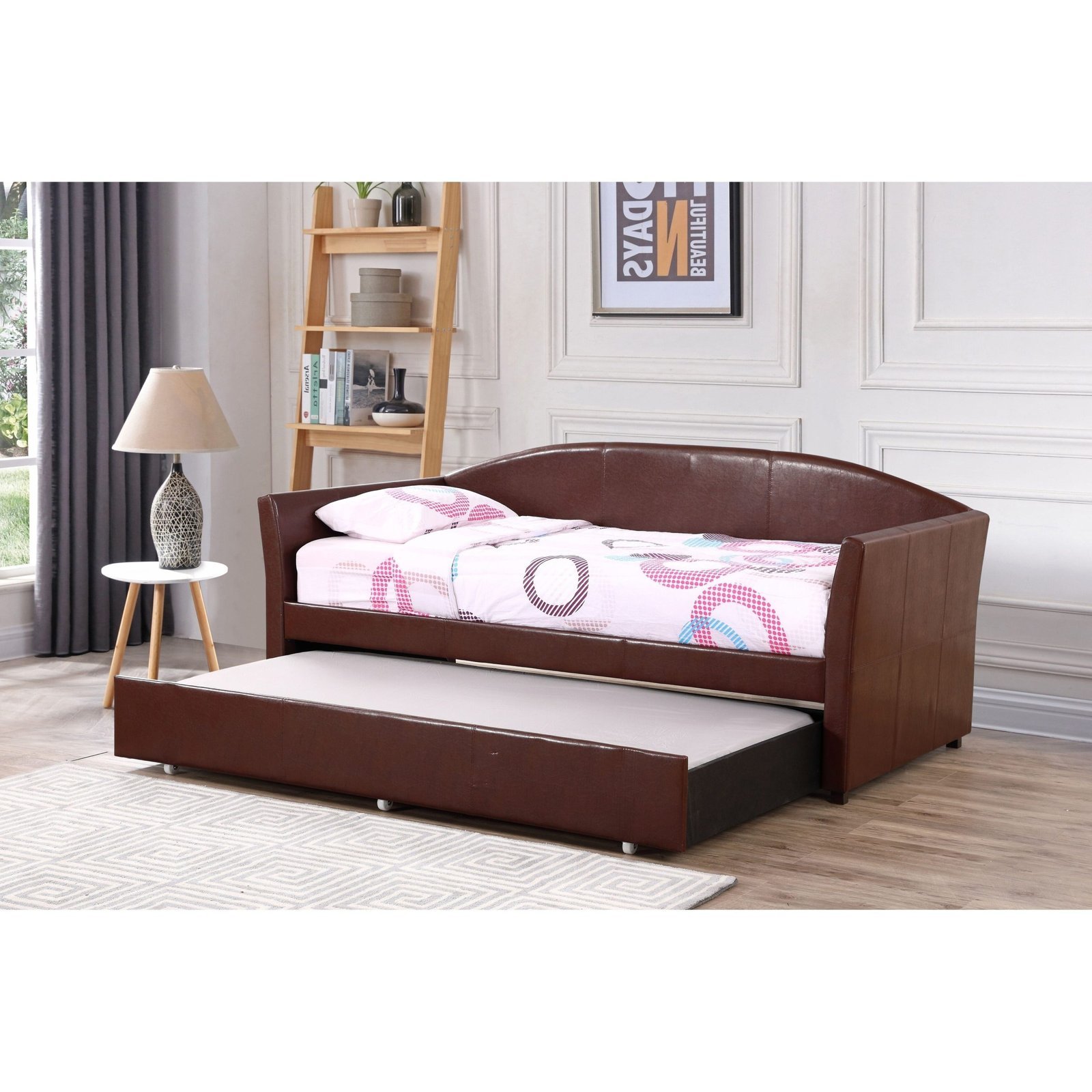 Adriana Faux Leather Daybed is the ideal complement to your guest room or child’s room. The casual look is distinctive and captivating. This trundle daybed’s exquisite construction and imitation leather upholstery will no doubt be admired for many years to come. The bed effortlessly complements a variety of home décor types and has a twin size on top and a twin size on the bottom. With this adorable bed, you can maximize your sleeping area.