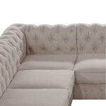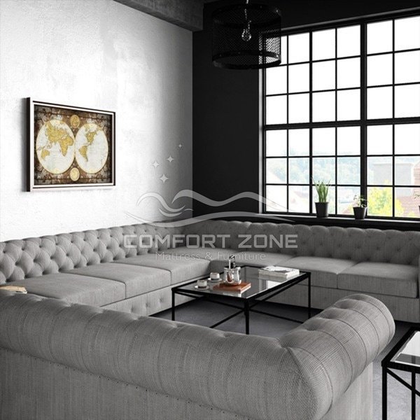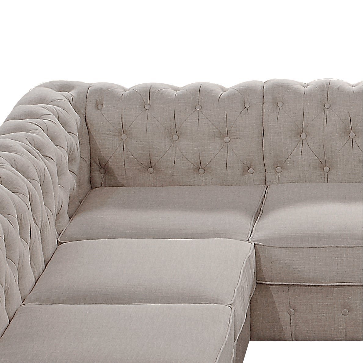 The Garcia U-shaped sectional couch, with its timeless deep button tufts and luxurious rolling arms, will enhance the interior design of your transitional home. With this sophisticated, linen-upholstered couch, you can elevate your living space. This sofa is ideal for lounging because it is filled with soft foam to provide extra comfort. Up to 11 people can sit comfortably at the large table.