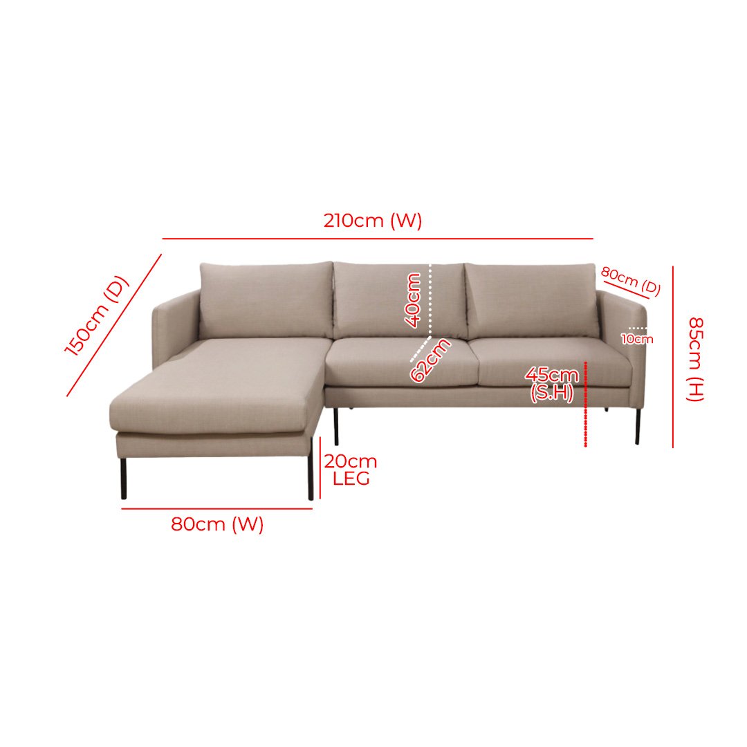 This Jasper sectional sofa will add luxury and style to your living room. This distinctive couch is constructed with high-density fresh foam seats and a traditional back covered in fabric for added comfort.
