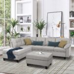 - A 3-seat couch, a non-reversible chaise lounge, and a storage ottoman