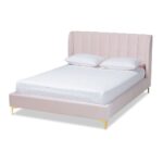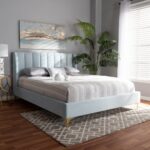 The Saverio bed may help you turn your bedroom into a chic sanctuary. The Saverio has a solid wood frame and is upholstered in a plush, luscious velvet that has a light gloss. The headboard’s traditional channel tufting brings out the richness of the velvet fabric. The Saverio’s headboard has a majestic wingback shape, and its gorgeous gold-tone metal legs are designed to exude elegance.