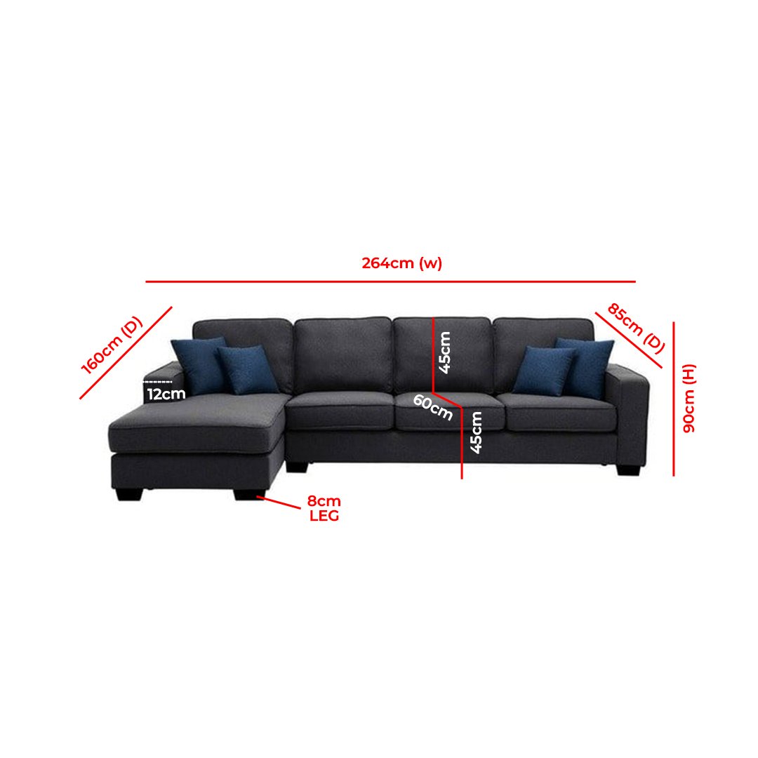 - Overall Dimensions: 264cm W x 160cm D x 90cm H