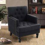 The linen fabric armchair will bring a touch of refinement and sophistication to your home’s decor while showcasing your own taste. And it may be used in a variety of situations. The button-tufted black linen fabric armchair exudes a feeling of classic modern vintage ageless beauty. An inviting nail head finish and well crafted wooden legs give this chair its genuine appeal, making it ideal for home décor.