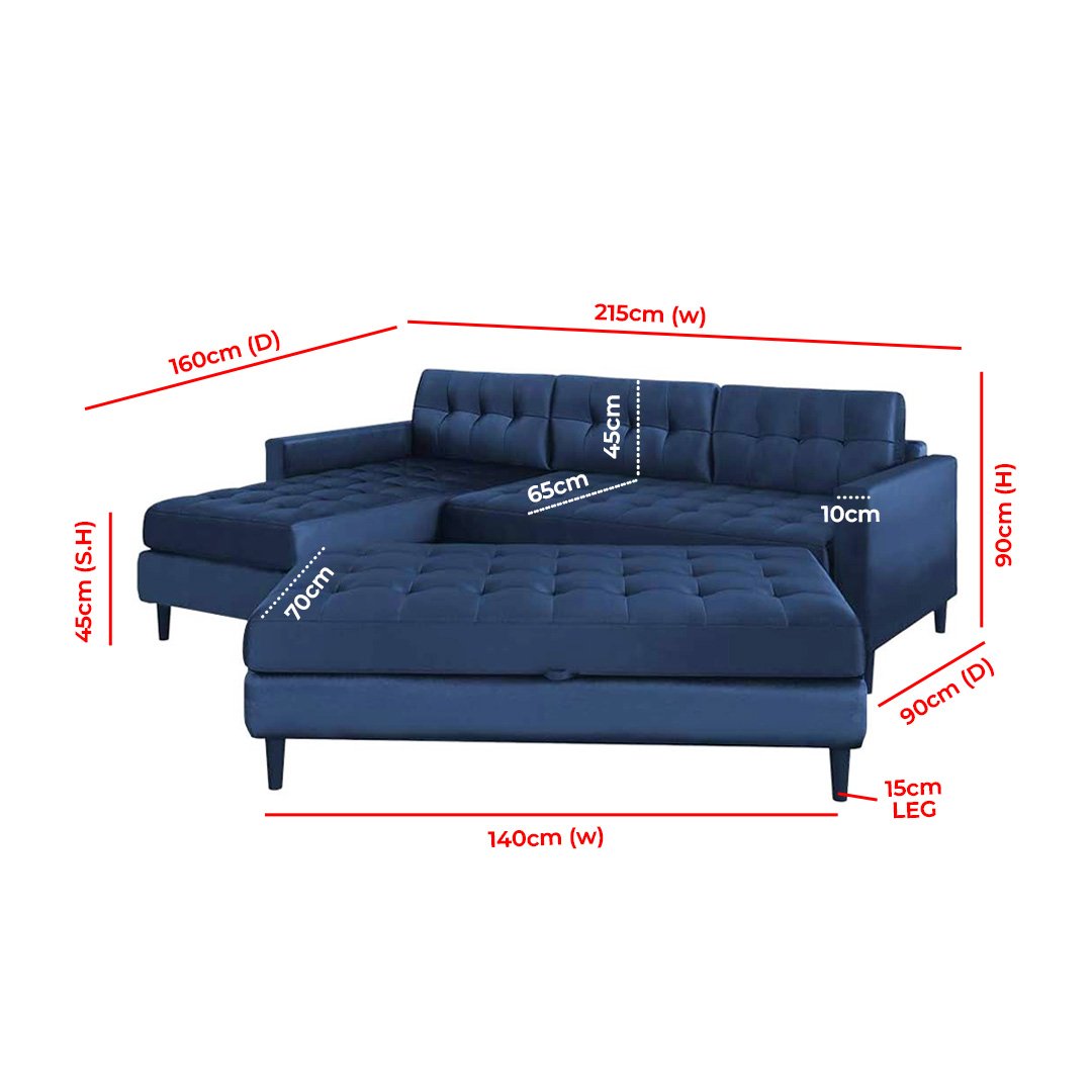 • Ottoman: 140cm W x 70cm D x 45cm H