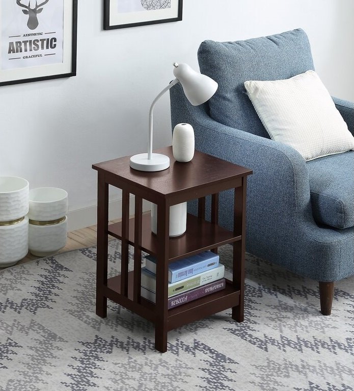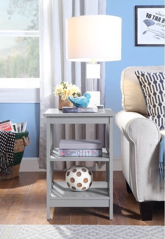 With this end table’s sleek lines, you can add a modern companion to any sofa, seat, or bed. This cost-effective item is made of engineered wood and has an open frame with a neutral finish for a light and welcoming appearance. While two lower layers give extra storage space, the surface top provides a convenient place to stage a lamp, framed family photographs, and other items. This small shape effortlessly tucks into tight spaces and awkward corners.