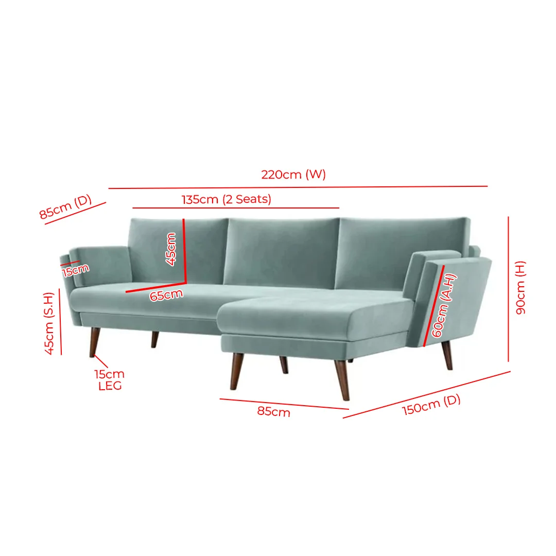 - Dimensions:Â 220 cm W x 150 cm D x 90 cm H