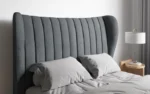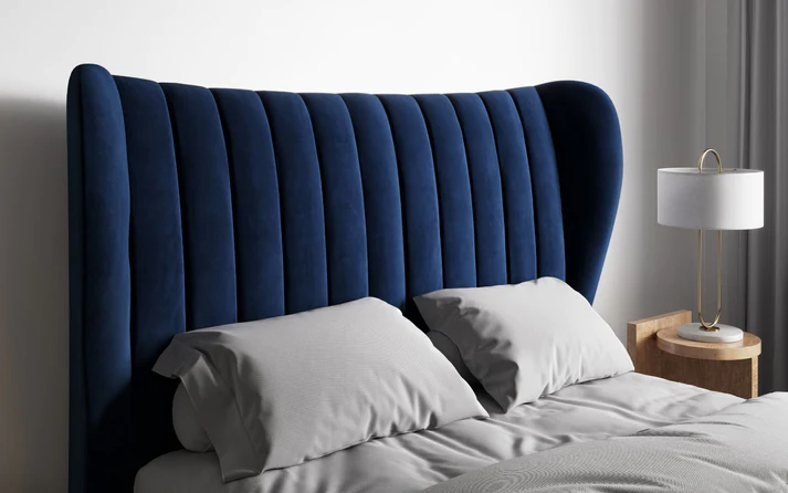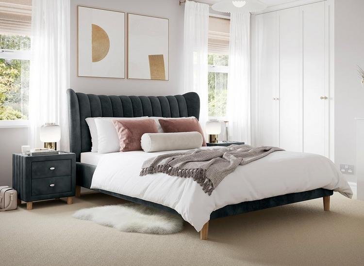 Available in sumptuous Platinum Grey linen or Midnight Blue velvet fabric selections. The double and king size versions of the Nordin bed frame are available.