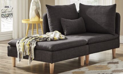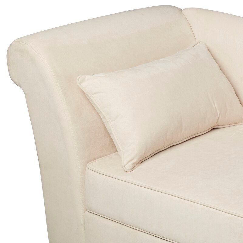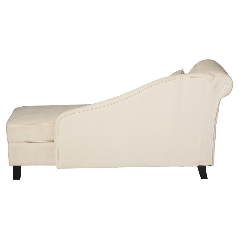 This chaise lounge is an updated version of the traditional chaise and features a clean-lined form with a sloping arm and a rolled back for a sociable appearance. This item is made of a strong and produced wood frame, foam fill, coil spring supports, and fabric upholstery. It is supported by four black-finished feet. With a toss pillow already included, it becomes more cozier because to its neutral tone, which lets it go well with many different styles and color schemes.
