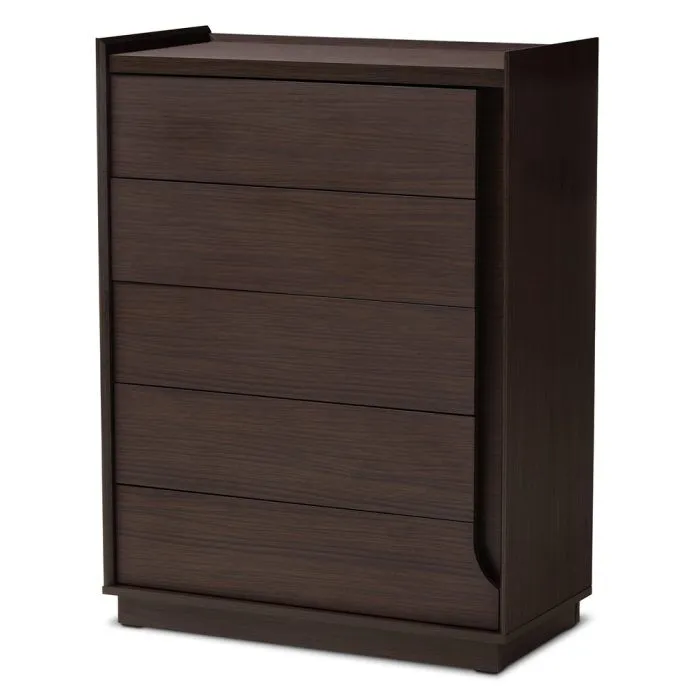 Use this chest to give your bedroom a cozy, upscale feel. This chest is a strong and long-lasting addition to your room because it is made from solid, 100% environmentally safe wood. Five roomy drawers on this attractive chest provide additional space for storing your clothes, jewelry, and other accessories.