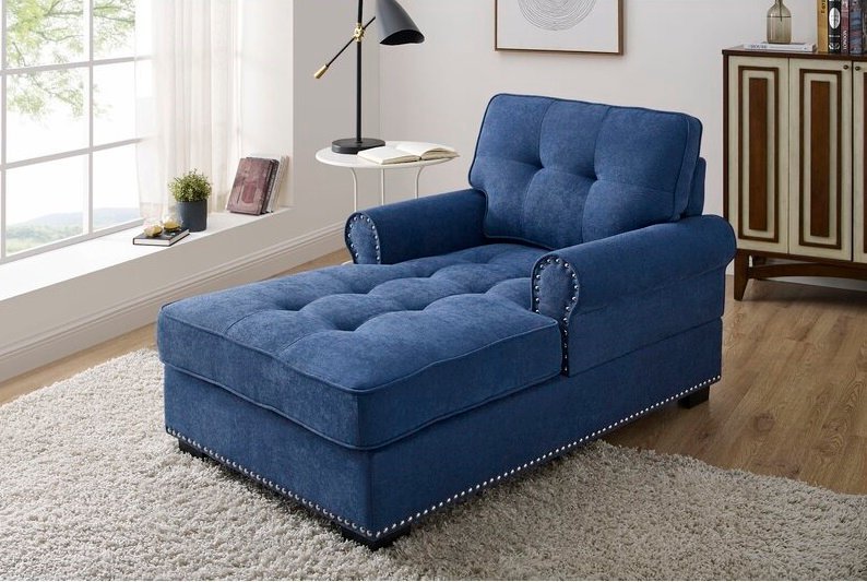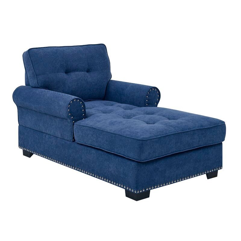 Chaise loungers offer a comfortable spot to relax and put your feet up, whether you’re rereading your favorite book or watching the nightly news before going to bed. With this chicly upholstered sofa, you may provide discreet relaxation to your bedroom or living space. While nail head embellishments stand out against the silky fabric, the rolled arm emphasizes the long structure.