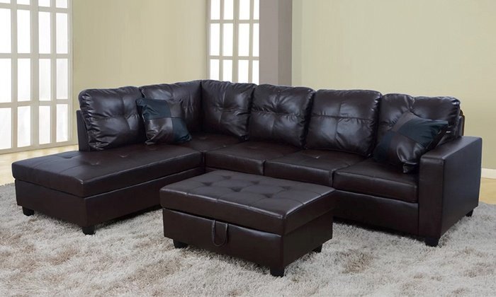 By using this wonderful sectional couch, you can update your living room while also providing a traditional foundation for your entertainment area. The two toss pillows with checks add a unique touch to the decor. The ottoman is not only fashionable, but it also has hidden inside storage for easy space management. Placing this sectional couch in your living room will create the ideal space for hosting cocktail parties and watching movies with your family.