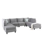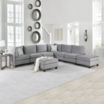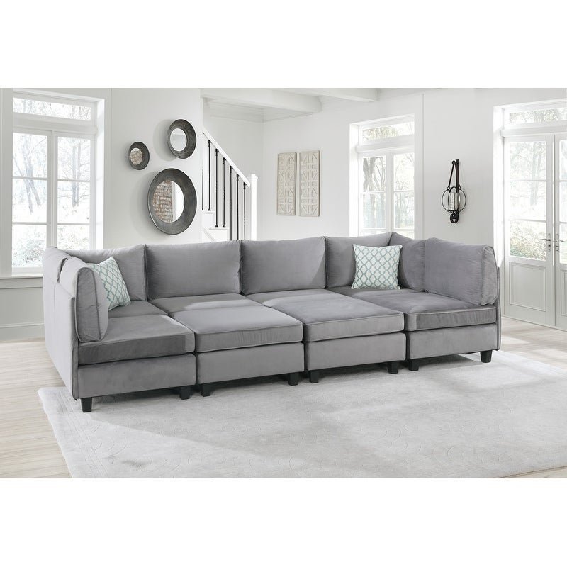 Decorate your space with this elegant sectional sofa. This sofa may be arranged in your home in any manner, guaranteeing the ideal fit for your space. A comfortable and elegant seat ideal for big family gatherings or close-knit social events with friends is upholstered in sumptuous grey velvet and filled with foam and sinuous springs for complete support.