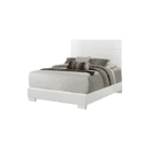 This line offers a white polyurethane coating polished to a high gloss finish, with beautiful modern design. The headboard of the bed has blue touch LED illumination. With this white bed, you may give your guest room a bright, airy feel. The bed, which has a low profile footboard-style frame and a white headboard, adds a contemporary air to any space and goes well with your existing design theme.