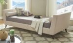 This lovely daybed with upholstered fabric is the ideal addition to any room’s furnishings. The supple, delicate shape blends well with many forms of décor and gives off a contemporary yet traditional appearance. You may use this upholstered day bed as a stylish seating choice during the day and as a cozy bed at night.