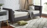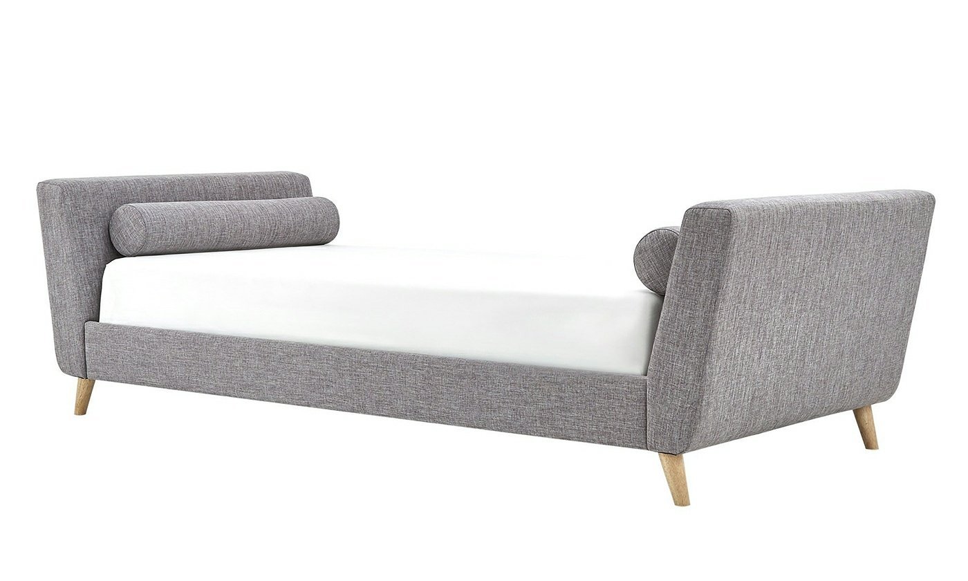 - Design of the bed; daybed upholstery; fabric in black, grey, or beige