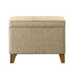 With this circular storage ottoman, you may have storage without sacrificing beauty. With this storage ottoman, you may have additional seats, space for storage, and a cozy footrest. Tan cloth with texture blends in with any decor, and the open top makes access to the storage area simple.
