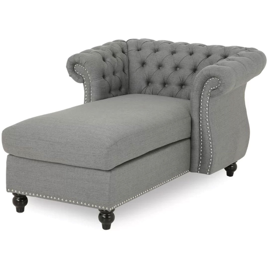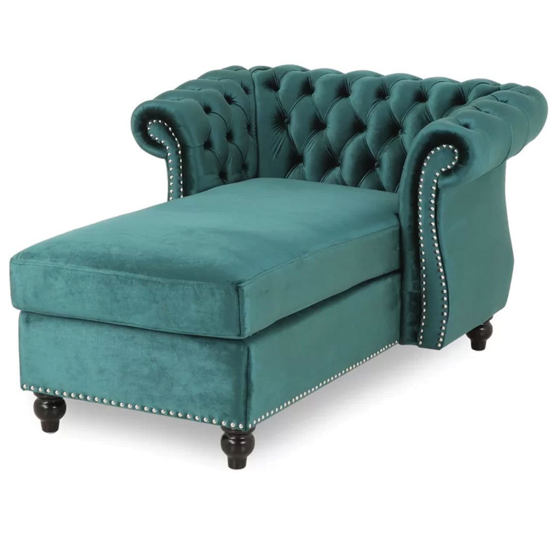 Enjoy timeless elegance in your home or apartment with this beautifully crafted tufted chesterfield chaise couch. Gorgeous chaise chair with