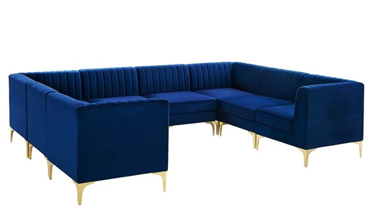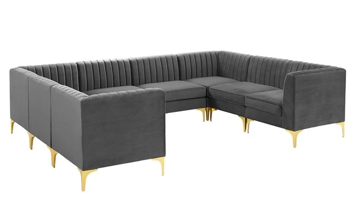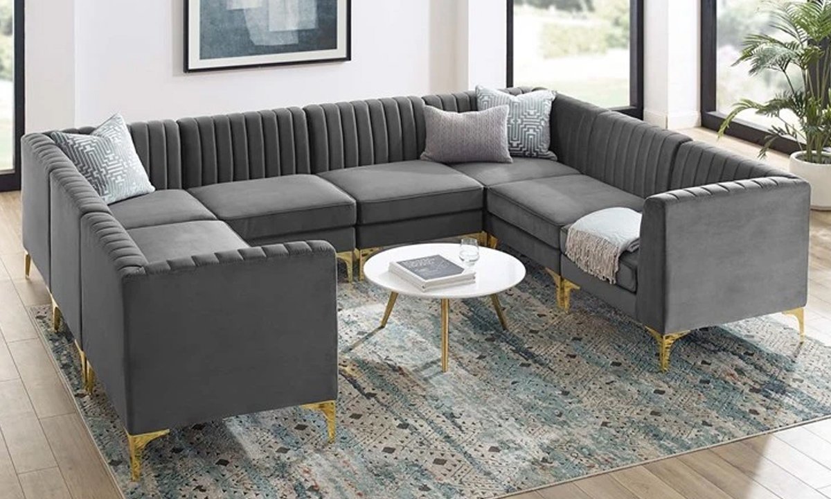 Modern XL Velvet Upholstery U-Shaped Sectional Sofa
