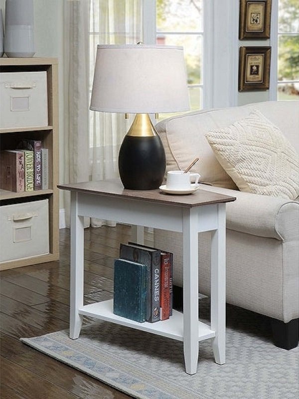 This table’s single shelf and wedge form allow it to fit comfortably between pieces of furniture, and its straight lines and tapering feet add to the piece’s exquisite appeal. It is manufactured of MDF plywood. The elegant, trapezoidal end table is offered in a variety of finishes, giving it the ideal option for your house.