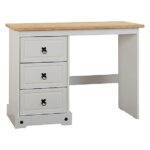 The Corona 3 Drawer Dressing Table boasts ample storage for your bedroom. This beautiful distressed finished dressing table will bring a whole new look to your home. The attractive design with metal drop handles and finish of the wood make it a superb piece of furniture to look at that is also highly functional. With three spacious drawers, there’s plenty of room to store your belongings.
